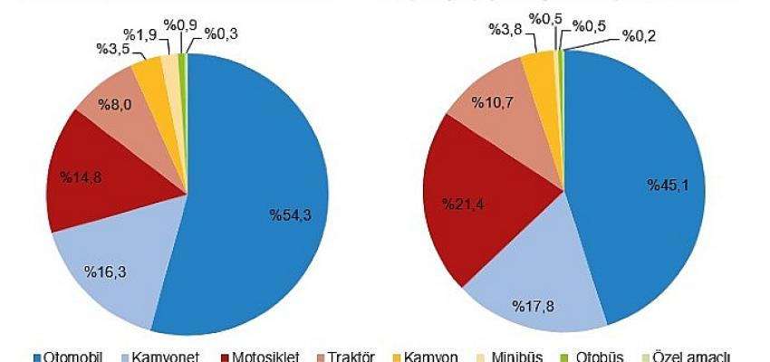 Aralık ayında trafiğe kaydı yapılan taşıtların 45,1'ini otomobil, 21,4'ünü motosiklet, 17,8'ini kamyonet, 10,7'sini traktör, 3,8'ini kamyon, 0,5'ini minibüs, 0,5'ini otobüs ve 0,2'sini özel amaçlı taşıtlar oluşturdu.