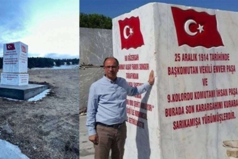 Sarıkamış Pltformu Başkanı Ümit Kabay ise, 7 yıl önce platform üyesi ve yöneticilerimizden Mustafa Ercan'ın yaptırıp Sarıkamış'a gönderdiği iki mermer bloktan oluşan anıtın mesnetini üst üste koydurduklarını belirterek, 35 tonluk mermer Şehitlik anıtı büyük gayretler ile yerine monte edildiğini kaydetti.