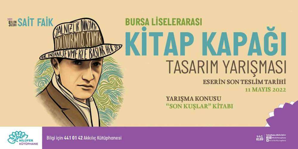 Nilüfer Belediyesi’nin 2022 yılının yazarı ilan ettiği Sait Faik Abasıyanık’ın Son Kuşlar isimli kitabı, lise öğrencilerinin yapacağı kapak tasarımına konu olacak. Sait Faik’in dil ve üslûbunu, eserlerini derinlemesine incelemek, bu incelemeyi farklı disiplinlerde gerçekleştirmek, yazarın genç kuşak tarafından daha yaygın biçimde tanınması ve benimsenmesini sağlamak, yaşadığı yıllardan bugüne eserlerinin genç zihinlerde oluşturduğu görsel algıyı belgelemek amacıyla düzenlenen Liselerarası Kitap Kapağı Tasarım Yarışması’nda süreç başladı.