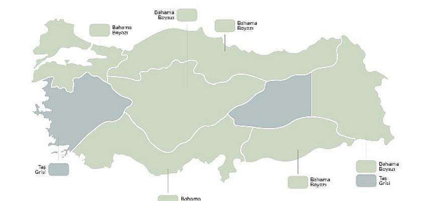 Türkiye’nin 2021 renk haritası, iç cephede yenilikçi ve modern renklere yönelimin arttığını da gözler önüne seriyor. İllere göre renk tercihlerini de ortaya koyan haritaya göre İstanbul, Ankara, Bursa, Çanakkale ve Eskişehir iç cephede grinin farklı tonlarını kullandı, Antalya ‘Sakız Beyazı’nı, Konya ‘Açık Fildişi’ni, Diyarbakır ise ‘Yeni Kar’ı tercih etti.
