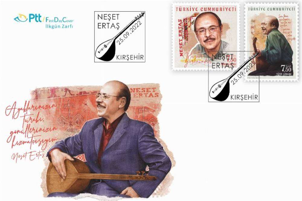 İSTANBUL (İGFA) - PTT AŞ 25 Eylül 2022 tarihinde "Neşet Ertaş" konulu 2x7,50 TL bedelli (45 x 45 mm ve 36 x 52 mm boyutunda) anma pulu, söz konusu pula ait 22,50 TL bedelli ilkgün zarfı ile içerisinde 2 x 7,50 TL bedelli seri numaralı blok pullar (58 x 70 mm boyutunda) ile 4 adet posta kartı bulunan portföy 150 TL bedelle abone sayısı kadar PTT iş yerlerinde, PTT’ye ait www.filateli.gov.tr web adresinde ve filateli cep uygulamasında satışa sundu.