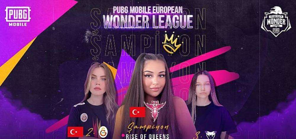 PUBG MOBILE European Wonder League kadınlar turnuvasında Türk temsilci Rise of Queens takımı toplamda beş galibiyet ile büyük bir başarıya imza atıp, turnuva şampiyonu oldu. Galatasaray Espor da turnuvayı 2. olarak tamamlamayı başardı.