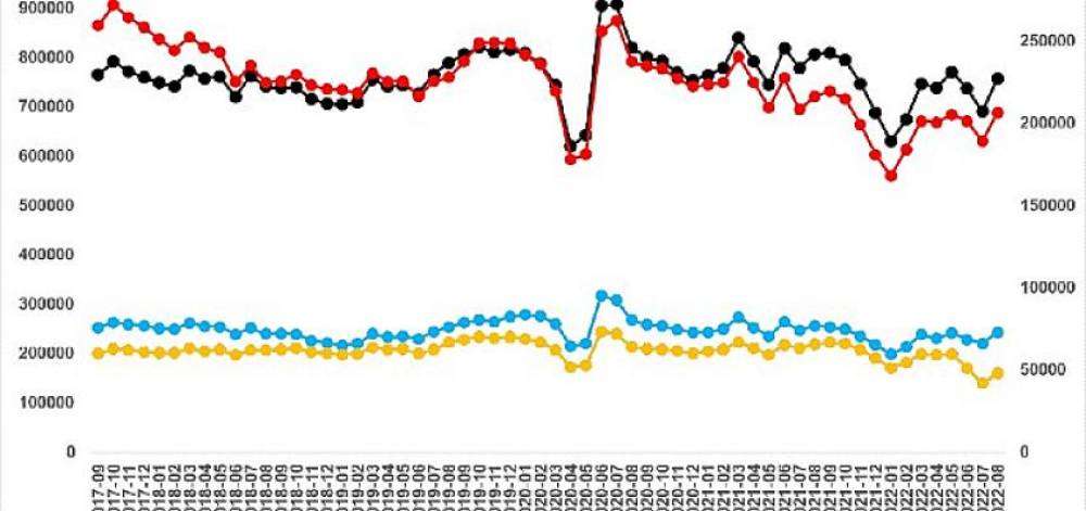 Reel konut fiyatlarındaki yıllık artış oranı Temmuz’daki yükselişin ardından bir miktar ivme kaybetti. Reel fiyatlardaki yıllık artış oranı geçen aya kıyasla 0,5 puan artarak yüzde 65,8 oldu. Öte yandan 2020 Mayıs’tan itibaren sürekli artan ülke genelindeki reel konut fiyat endeksi 2022 Ağustos ayında 171,2’ye ulaştı. Endeksin bu seviyesi satılık konut reel fiyatlarının 2017 Eylül dönemindeki değerini yüzde 71,2 aştığını gösterdi.