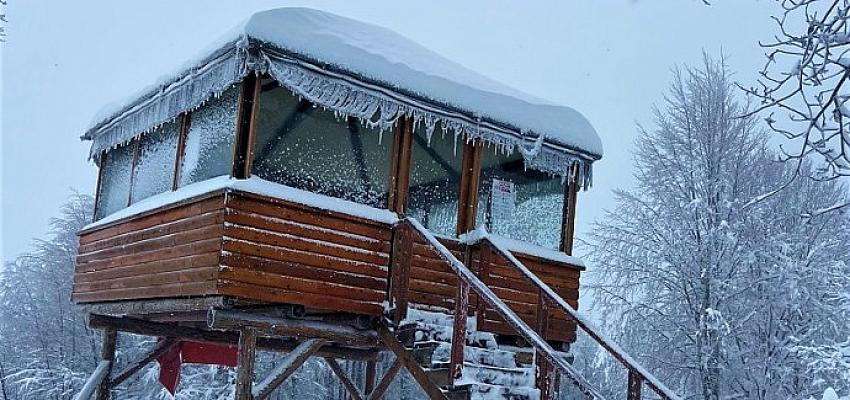 Kar yağışının etkili olduğu Samanlı Dağlarında kar kalınlığı 50 santimetreye yaklaşırken, fotoğraflara yansıyan manzara görenleri adeta mest ediyor