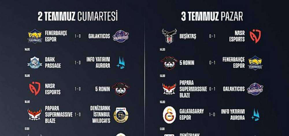 Bu hafta ilk galibiyetlerini bulan Fenerbahçe Espor 2’de 2 yaparak, kendileri için henüz her şeyin bitmediğini gösterdi. Ligin çıkış arayan diğer takımları Galatasaray Espor, Beşiktaş Espor ve Info Yatırım Aurora ise haftayı 1 galibiyet 1 mağlubiyet ile tamamladı.