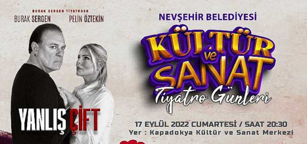 Nevşehir Belediyesi Kültür ve Sosyal İşler Müdürlüğü tarafından düzenlenen Tiyatro Günleri, ünlü sanatçılar Burak Sergen ve Pelin Öztekin’in rol aldıkları Yanlış Çift adlı romantik komedi oyunu ile başlıyor.