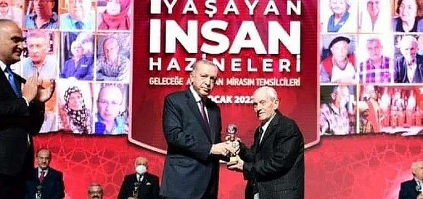 Son karatabak ustası, Bergamalı İsmail Araç'a Cumhurbaşkanı Recep Tayyip Erdoğan tarafından anlamlı bir Kültür hizmet ödülü verildi.