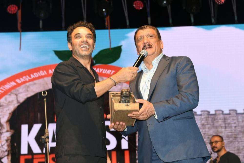 Malatya Büyükşehir Belediye Başkanı Selahattin Gürkan da sanatçı Uğur Aslan’a çeşitli hediyeler takdim etti.