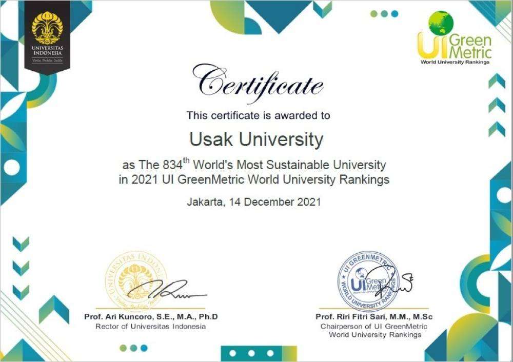 Ayrıca 2021 yılında bir kez daha UI GreenMetric “Dünyanın En yeşil Kampüsleri” sıralamasında ilk bin üniversite arasına girmeyi başardıklarını hatırlatan Rektör Savaş, ‘‘Uşak Üniversitesi, UI GreenMetric sıralamasında ikinci kez yer aldı. Üniversitemiz bu sıralamada altyapı alanında 343’üncü, enerji ve iklim alanında 735’inci ve eğitim alanında da 775’inci sırada yer alarak birçok dünya üniversitesini geride bıraktı. İlerleyen dönemlerde yapılan iyileştirmelerle daha üst sıralarda yer almayı hedeflemekteyiz. Üniversite olarak bu yolda durmadan çalışmaya, dünyadaki önemli akreditasyon kurumlarının sıralamalarında yer almaya devam edeceğiz. Bu konuda çalışan Uşak Üniversitesi Ailesinin her bir ferdine teşekkür ediyorum.” şeklinde konuştu.